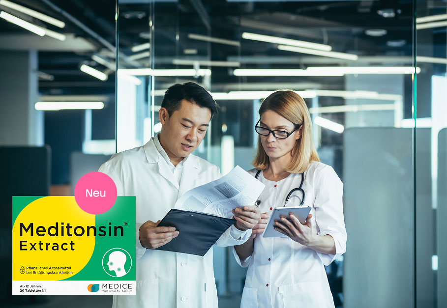 Bei akuter Erkältung und typischen Symptomen wie Husten, Schnupfen und Halsschmerzen, ist verlässliche Unterstützung gefragt . Natürlich starke Hilfe bietet Meditonsin® Extract. Die bewährte Kombination aus hochkonzentrierten Pflanzenextrakten verkürzt die Erkältungsdauer um bis zu 3 Tage. (1),(2)