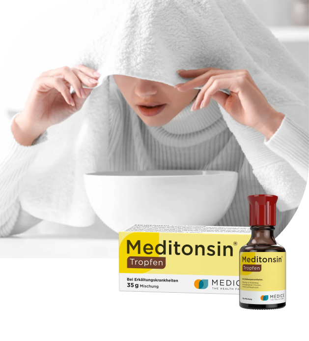 Das klassische Inhalieren mit einem Topf ist gerade bei ersten Anzeichen einer Erkältung ratsam, da durch die bessere Durchblutung Abwehrmechanismen des Körpers aktiviert werden können. Im späteren Verlauf einer Erkältung löst das Inhalieren festsitzenden Schleim nur unzureichend. Meditonsin® lindert typische Erkältungssymptome. Eine zusätzliche Nasendusche ist im späteren Verlauf einer Erkältung ein ratsames Mittel. Bei einer Nasendusche besteht keine Gefahr, sich durch zu heißen Dampf oder heißes Wasser zu verletzen.